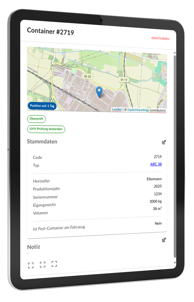 „Die Container-UVV ist direkt in der App integriert – abgelaufene UVV wird sofort gemeldet, bevor es zum Risiko wird.“